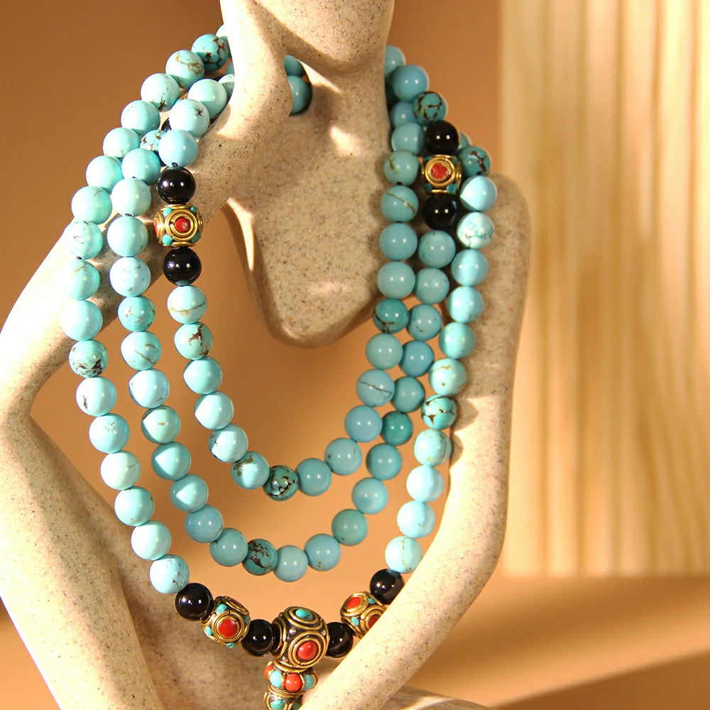 This strand of blue turquoise mala beads is not merely a vessel of faith, but a masterpiece bestowed by nature itself. May its gentle movement between your fingers bring inner peace and the radiance of wisdom to your soul.