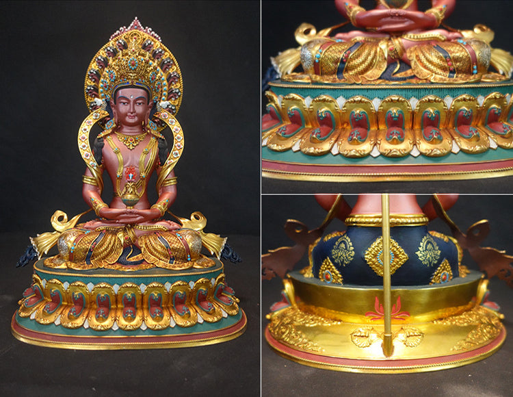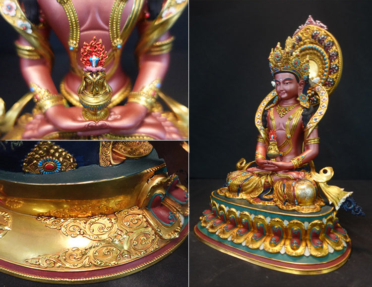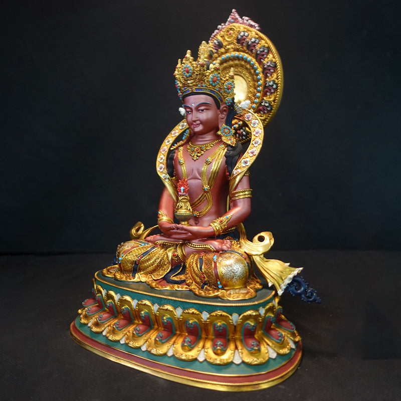 Amitayus Buddha (Sanskrit: अमितायुस्; Tibetan: ཚེ་དཔག་མེད་) is one of the Sambhogakāya forms of Amitābha Buddha, specifically embodying the virtue of "longevity." In Vajrayāna Buddhism, he is revered as a deity who removes the karmic obstacles of a short lifespan and bestows longevity.