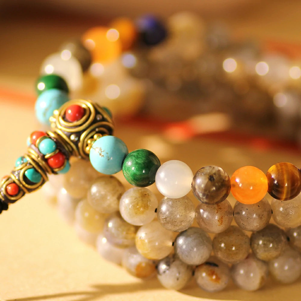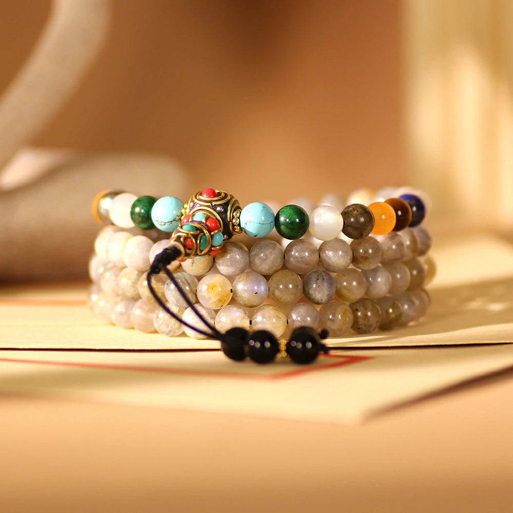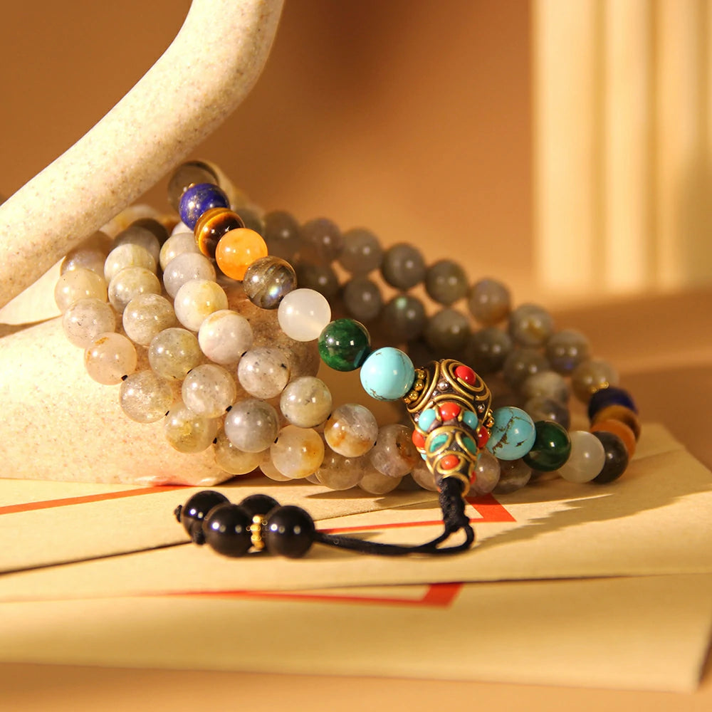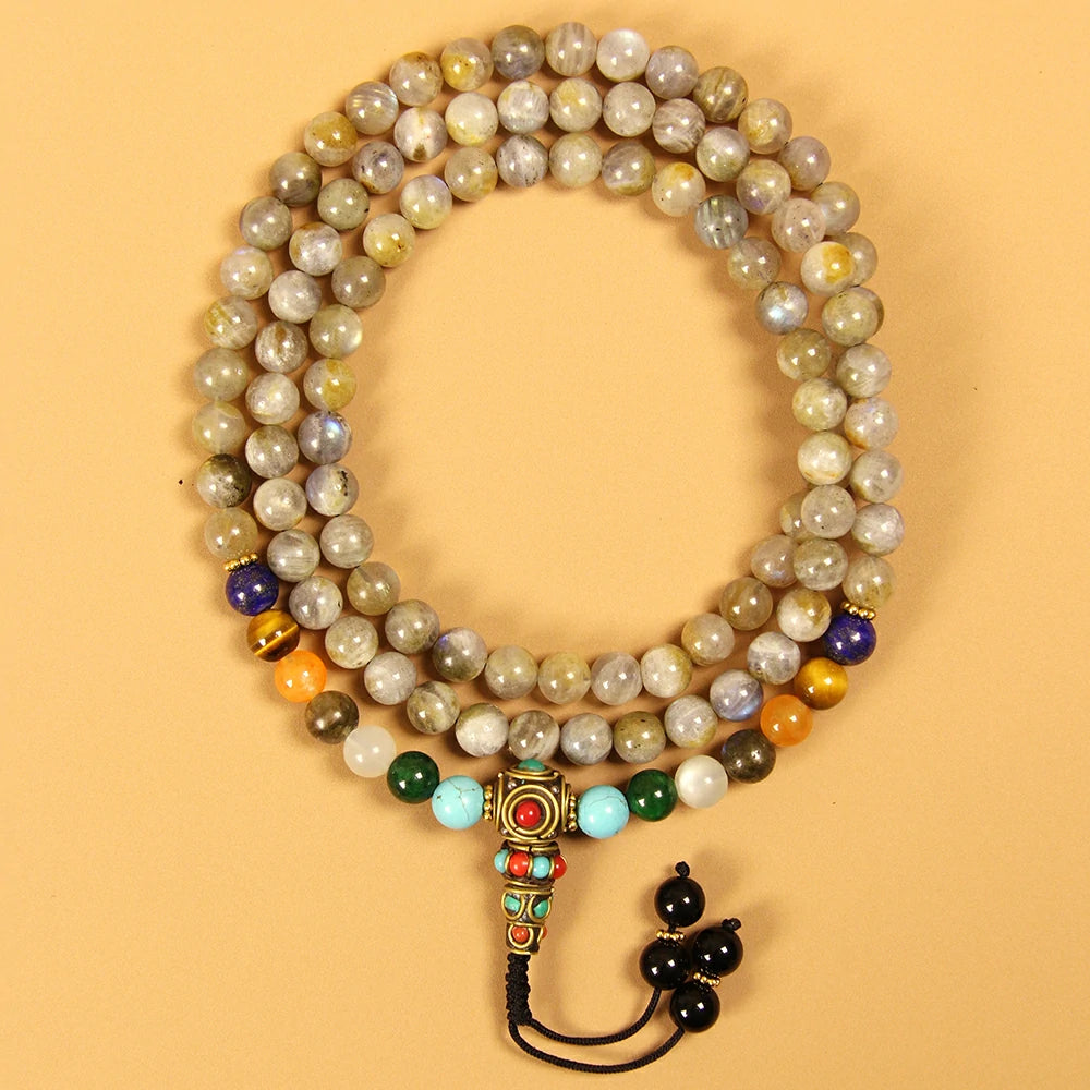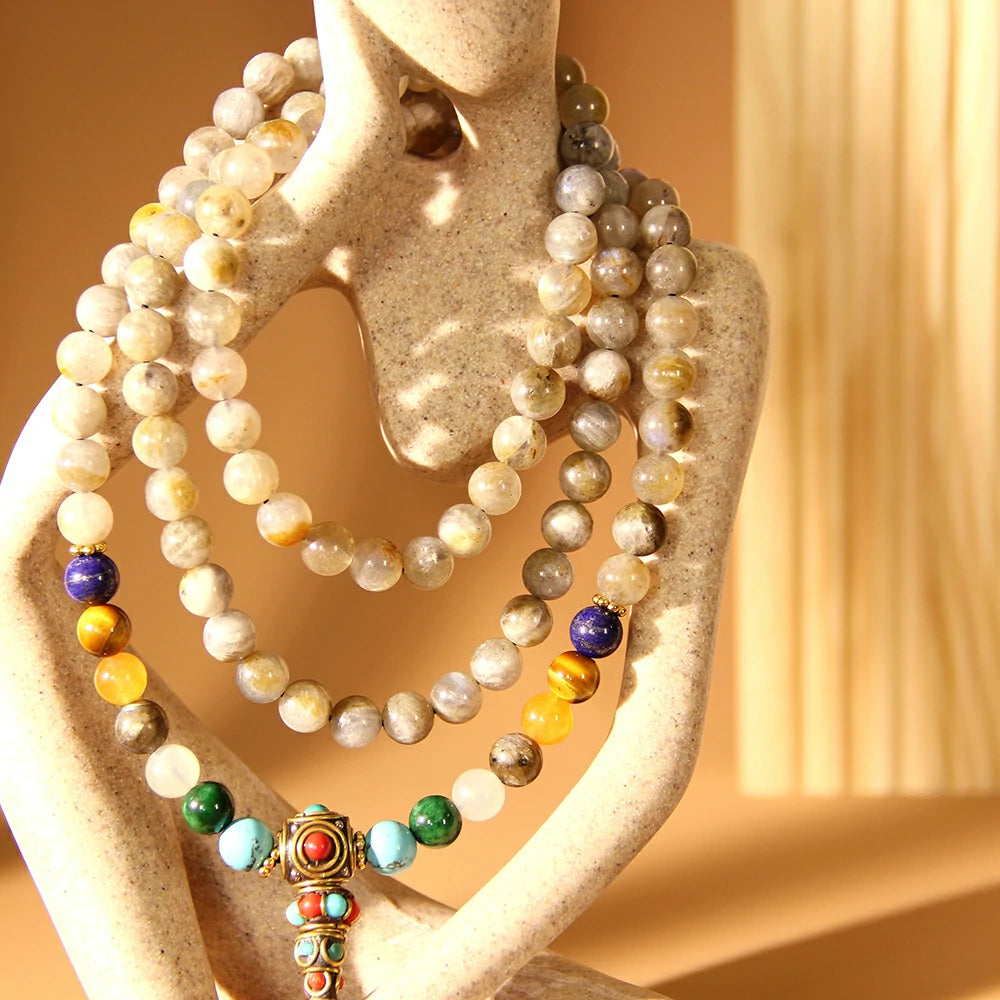 The Labradorite Mala Beads represent a harmonious fusion of nature's gift and spiritual faith. Whether used for personal meditation or presented as a heartfelt gift to cherished friends, they will accompany every inward journey with their unique iridescence and energy.