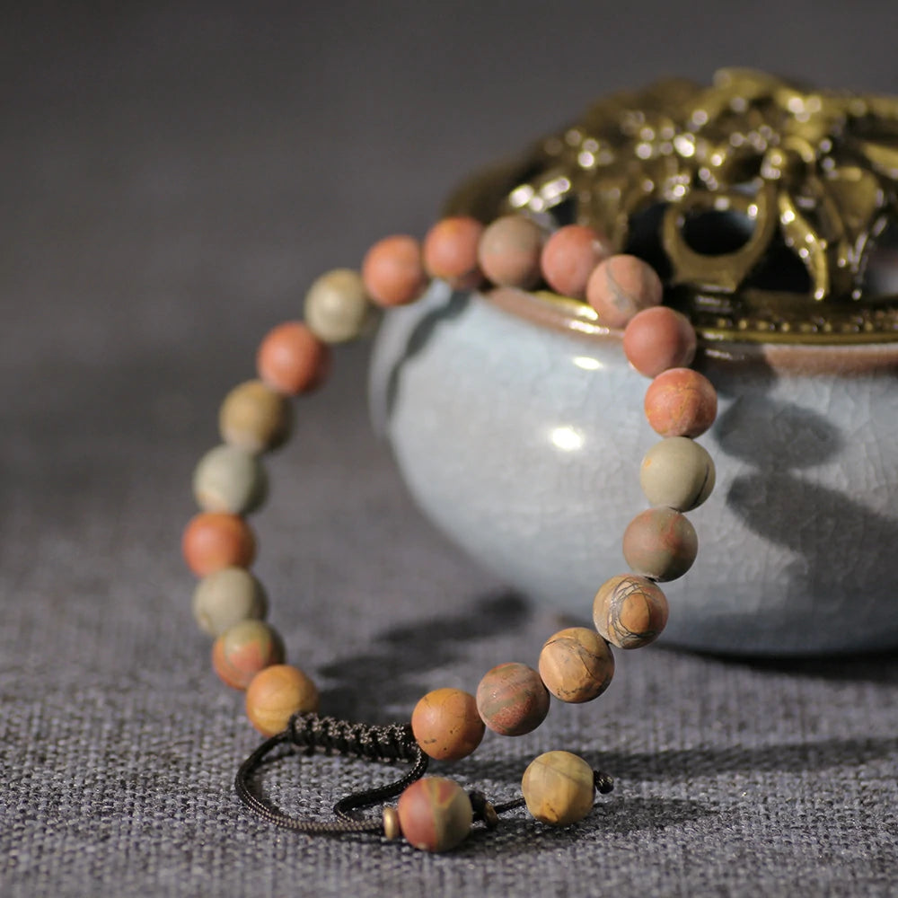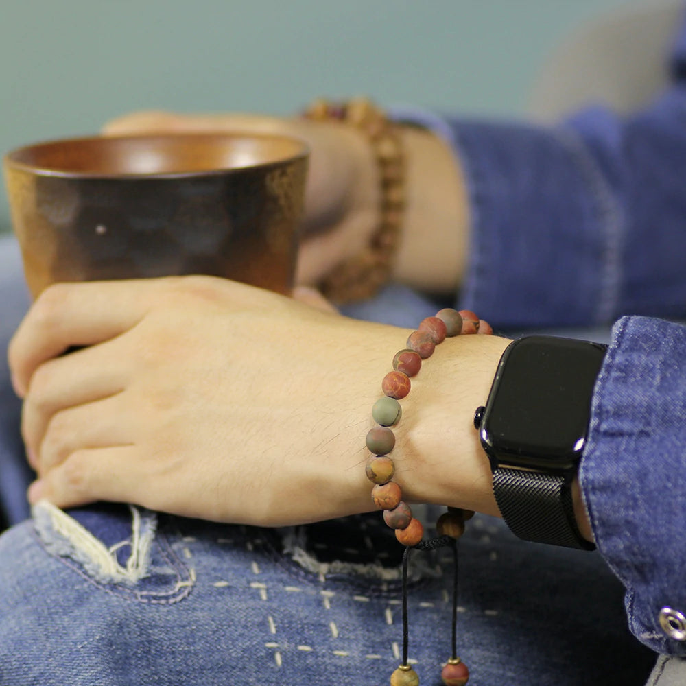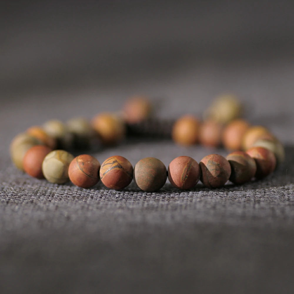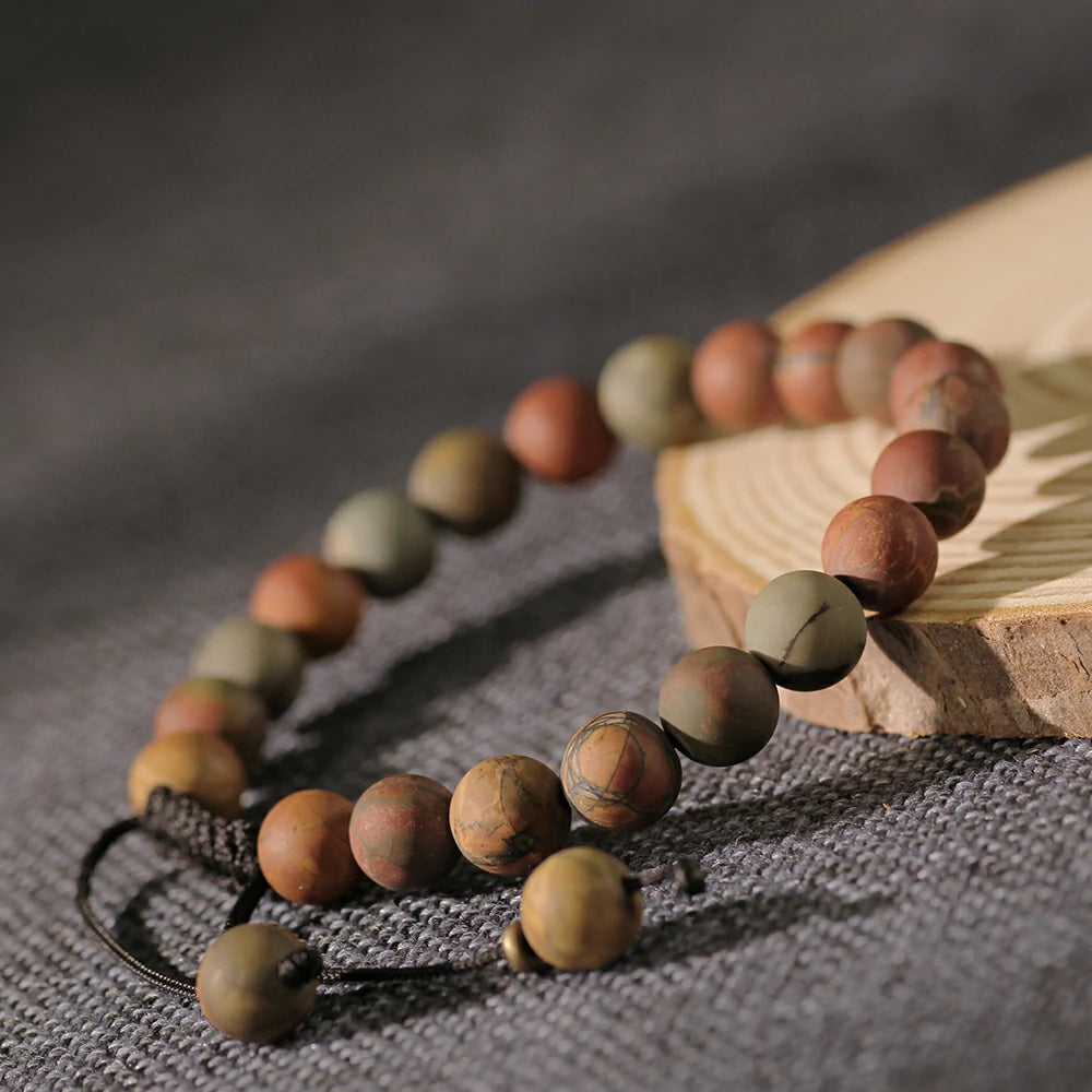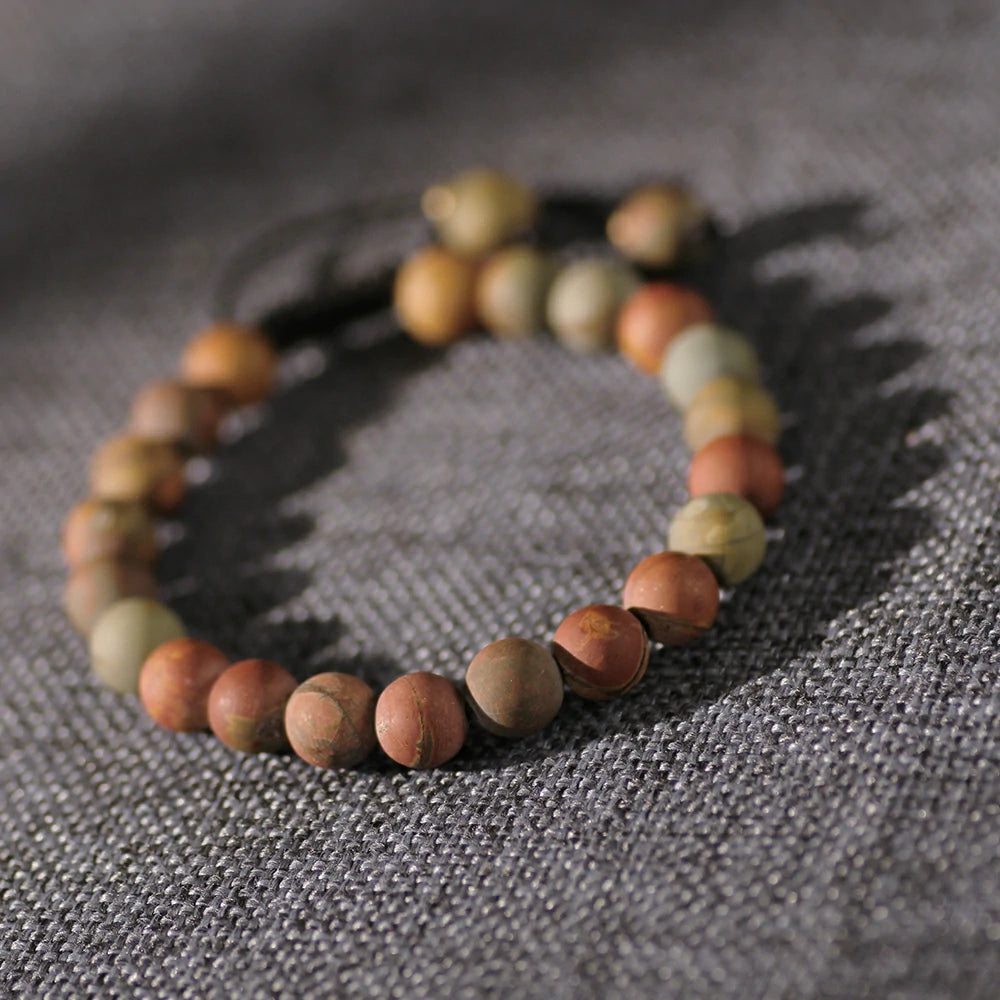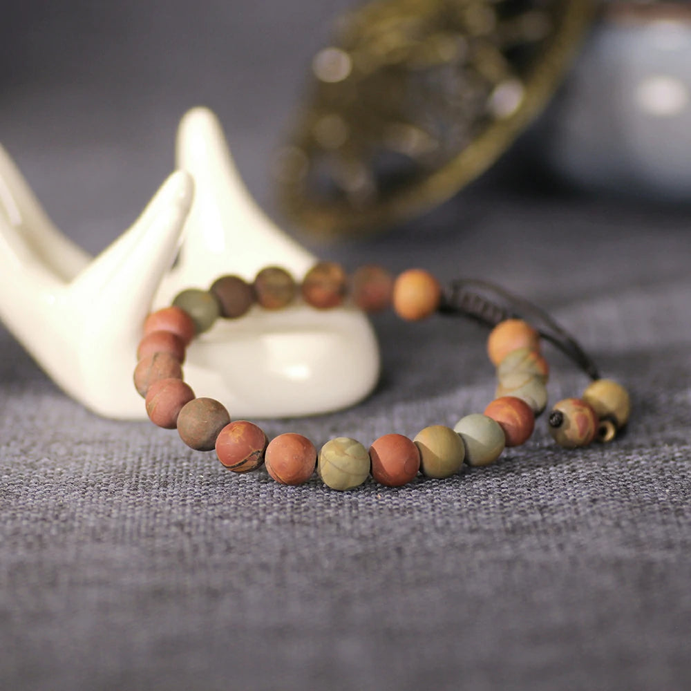 Let Picasso Jasper Stone Bracelet become a source of inspiration in your life. Feel the resonance of earth and art through its flowing patterns. Embrace this natural gift from the Earth—acquire yours now and cherish its timeless beauty.
